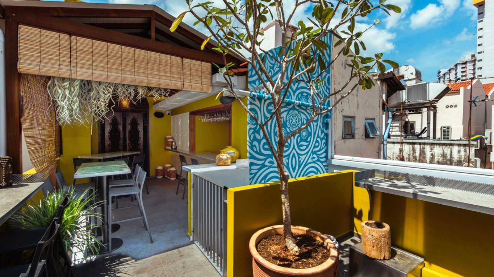 Our ground floor coffee spot, a quintessentially Singaporean shophouse – fitted with our 8 meter banquette seat, lovingly hand-carved from a single tree.
